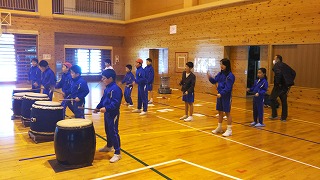 2018年1月30日 17時32分 6年生を送る会に向けて、3・4・5年生が太鼓練習を始めました。
