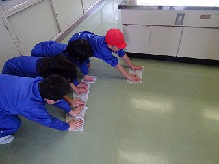 全校水ぶきで3階特別教室をきれいにしました。