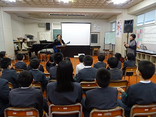スプールさんは、読み聞かせやピアノ、ギターの演奏をしてくださいました。児童はしっかりと聞いたり、一緒に歌を歌ったりしていました。