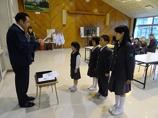 校内書き初め大会の表彰が行われました。