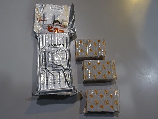 輪島市では、保存食にビスコのビスケットを備蓄しているそうです。今日は、その保存食をいただき、給食の時間に食べてみました。