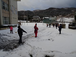 昼休みに雪遊びをしました。