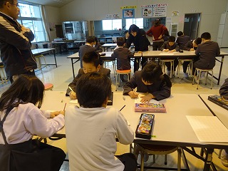 3~6年生は、書き初めをしたランチルームをしました。