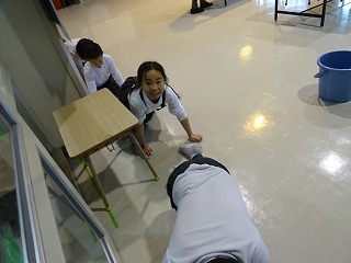 全校水ぶきでランチルームやげた箱・玄関をそうじしました。