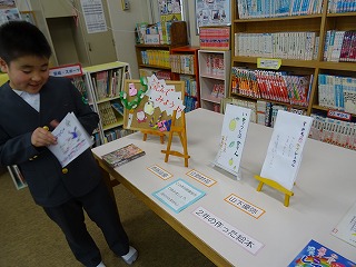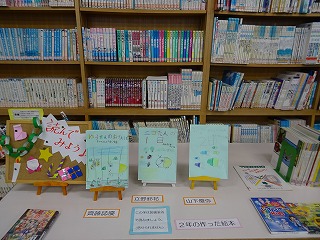 図書室に2年生の作った絵本が置かれています。