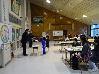 鵠巣小学校では、毎月1日と15日にPTA生活委員会の方と先生で交通安全指導を行っています。