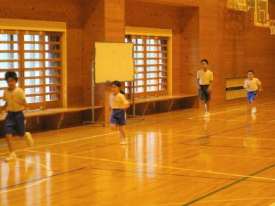 今日から11月9日までの長休みは、ランランタイムです。7分間、自分のペースで体育館を走り、記録表に走った周数を書き込みます。