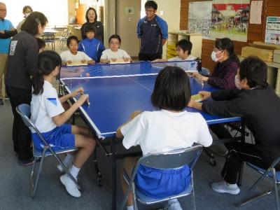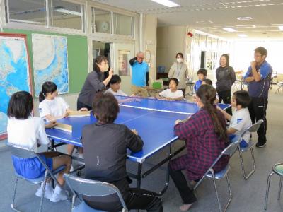 今日のクラブ活動は、卓球バレーです。昨年、地域の高齢者の方に教えていただき、楽しかったことから、今年度も実施しました。