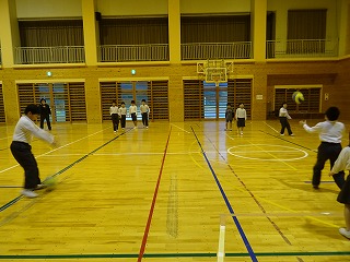 全校スポチャレでシャトルボールをしました。
