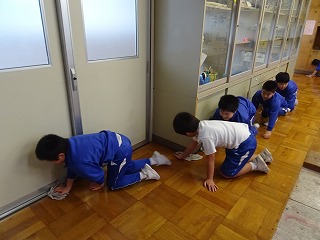 全校水ぶきで3階特別教室をピカピカにしました。