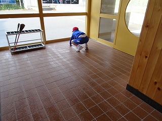 全校水ぶきで体育館と体育館廊下や更衣室をきれいにしました。