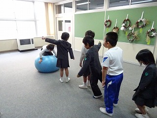 今回のシャトルボールは、他の学年の様子を見合いました。