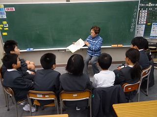 5・6年生では、図書ボランティアさんが絵本を2冊読んでくださいました。2冊目は、ろくべえと言う犬を低学年の児童が助けるお話で最後は拍手で終わりました。