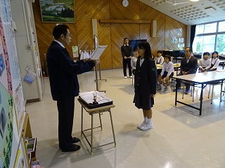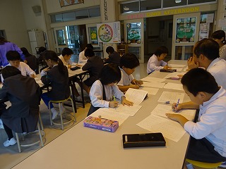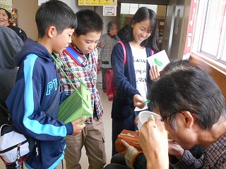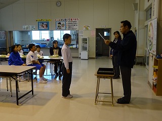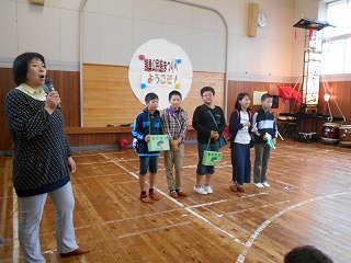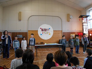 5・6年生はみどりの募金をしました。3・4年生は「猿鬼」の紙芝居をしました。3~6年生の合唱をしました。