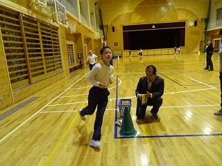全校スポチャレでシャトルボールをしました。