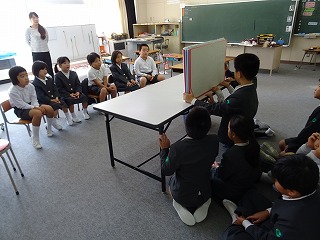3・4年生が公民館祭りで発表する紙芝居を1・2年生に見てもらいました。