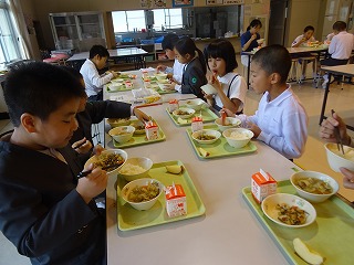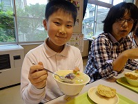 今日の給食に鵠巣小のみんなで収穫したサツマイモを使ってもらいました。
