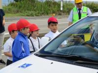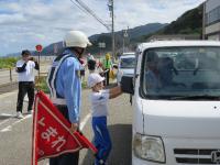 「気を付けて運転してください」「スピードを出さないで運転してください」という子どもたちの呼びかけに、笑顔で「ありがとう」と応えていただき、子どもたちも大満足の様子でした。