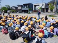 4月30日(水)春の遠足が実施されました。この日は天気は良く、歩いていて気持ちの良い遠足日和でした。1年生は初めての遠足で、松任グリーンパークまで歩きました。行きも帰りもがんばって歩くことができました。 |