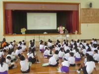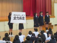 5月7日(水)全校朝会がありました。児童集会では児童目標の発表、運動会のスローガン発表、そして運動会の色決め抽選会が行われました。児童目標は「あいすにトッピング」運動会のスローガンは「全力疾走」に決まりました。運動会が目前です!全力尽くしてがんばりましょう! |