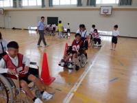 6月3日(火)4年生は福祉の学習で車いす体験を行いました。社会福祉協議会の協力を得て、車いすを用意していただきました。子どもたちは車いすに乗る、車いすを動かす体験を通して、乗っている人に不安を与えないように、声をかけながら動かすことができました。思いやりは大切です。 |