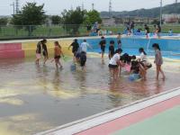 6月6日(金)5年生が中心となり、プール掃除がありました。こびりついた頑固な汚れを水でかき出し、プールの壁面や側溝を洗い流しました。プールの底にはたくさんのヤゴがいて、トンボの住みかなっていたことがわかりました。5年生の協力のおかげでプールがきれいになりました。 |