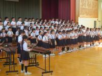 6月18日(水)、さわやかタイムで4年生が市音楽会で披露するプログラムを演奏しました。話題曲の『Bling-Bang-Bang-Born』の演奏と『地球へ…』の合唱をしました。これまで4年生は授業参観で2日間演奏を披露し、場数を踏んで成長してきました。本番は大成功間違いなしですね。 |