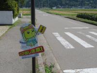9月16日(火)舘畑コミュニティーセンターより、交通安全の飛び出し防止看板をいただきました。本校に4つ寄贈していただき、校門前に2つ、学童・坂田道場前に2つ設置しました。マスコットキャラクターのめぐりんとあみちゃんが子どもたちを見守ってくれます。 |
