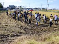 9月26日(金)5年生が稲刈り体験をしました。田植えから約120日。立派に育った稲を手刈りしました。稲の生育まで支えてくださった北辰農産の皆様に感謝申し上げます。子ども達は収穫までの手間暇や生産までの苦労を味わったと思います。食糧や自然のありがたさを感じたことでしょう。 |
