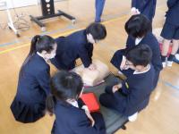 1月14日(水)5年生を対象に救急救命講習会が行われました。鶴来消防署の署員さんらが5年生に胸骨圧迫の方法を教えました。マネキンの人形を使いながら、演習を行うのですが、力加減が難しく、なかなか垂直に押せないなど四苦八苦していました。いざというときの命を守る行動を学びました。 |