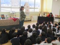 1月14日(水)感性のびのび教室で1年生はお話会に参加しました。今年もおひさまはらっぱの飯森博子先生をお迎えし、絵本の読み聞かせをしました。1年生の子どもたちはお話に吸い込まれるように聞き入っていました。本の楽しさが広がるいいお話し会でした。 |