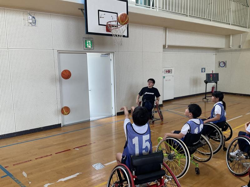 総合の時間に学習した、車いすバスケとボッチャの体験をしました。