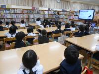 図書館では本の借り方を教えてもらいました。さっそく借りた本を友達と見せ合っていました。