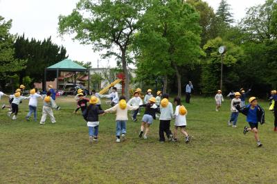 5月1日に額せせらぎ公園に遠足で行きました。あいにくの天候でしたが、公園では鬼ごっこやじゃんけん列車をして楽しみました。新しい友達もできて、笑顔で過ごすことができました。