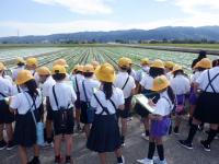 ビニールハウスの中や広い畑では、キャベツやレタス小松菜が大切に育てられていて、収穫の様子も見ることができました。普段は見ることが出来ない貴重な農家の仕事の様子を見て、子どもたちは「給食や家で食べている野菜は、こうして農家の方が一生懸命育てているんだ。」と実感しながら学習していました。農家の方から直接お話を聞くことで、野菜づくりの工夫や苦労を知ることができ、農家の仕事の大変さと大切さを学ぶ貴重な時間となりました。