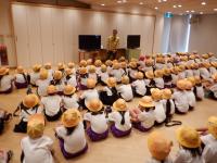 白山警察署の方から「人のものはとらない」というテーマでお話を聞きました。子どもたちは、「人のものを取ったり、盗んだりしない」「警察の人につかまっちゃう」と自分たちでしっかり考えていました。
