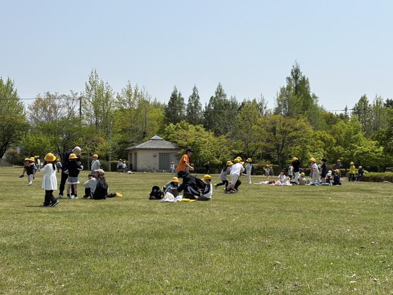 4月30日(水)春のあたたかい日差しの中、みんなで白山郷公園へ歩いて行きました。道中ではたんぽぽを見つけたり、虫を観察したりしながら、元気に歩きました。公園ではすべり台やブランコでたっぷり遊び、お弁当タイムもにぎやかで楽しそう!帰り道も最後までがんばって歩いた子どもたちの姿に、成長を感じた一日でした。