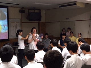 アシスタント役の助産師さん、石川県立総合看護専門学校の学生さんも一緒に来ていただき、いろいろなことを教えていただきました。
