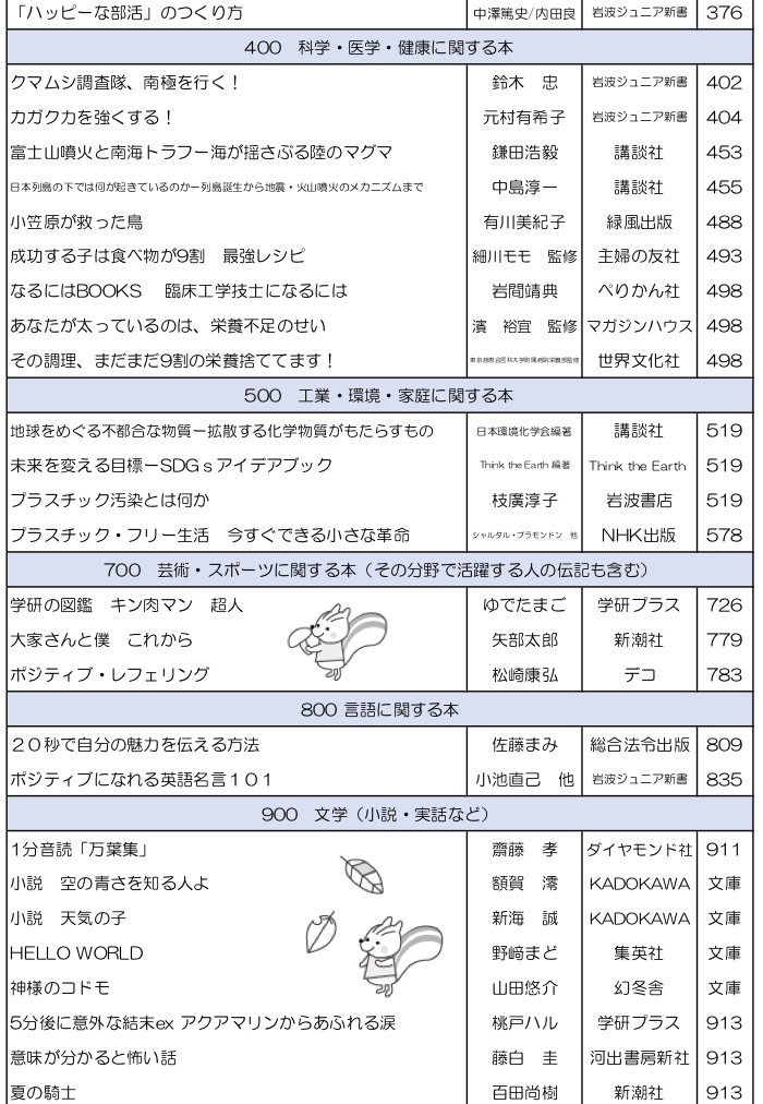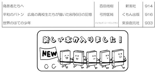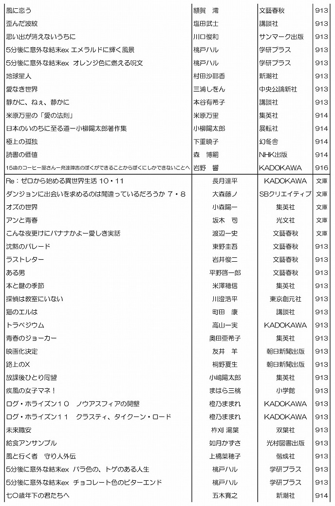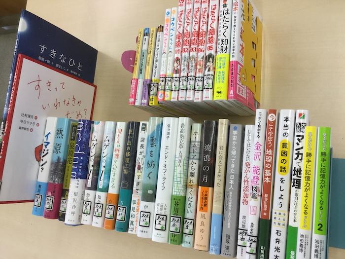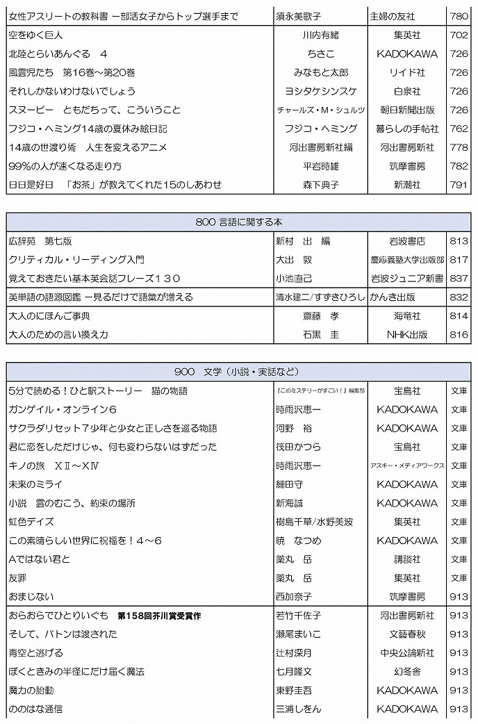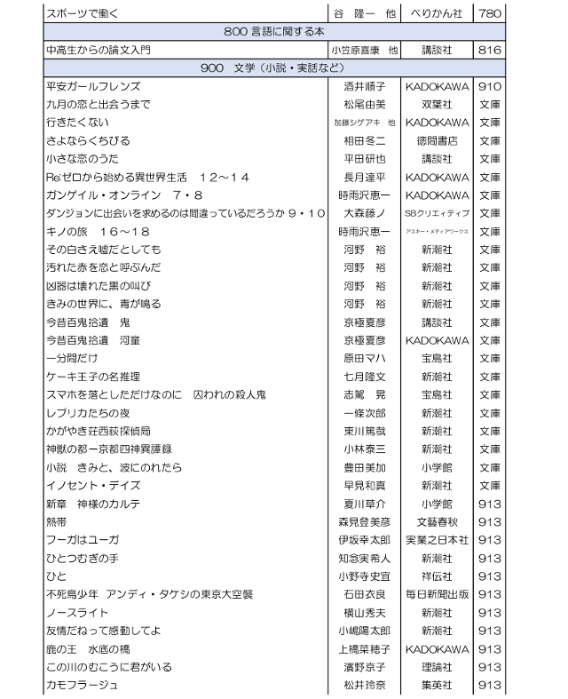 学校司書さんが,生徒,教職員に希望推薦図書をつのり,いろいろな選定参考資料を検討して作った,素晴らしい新刊たちです.