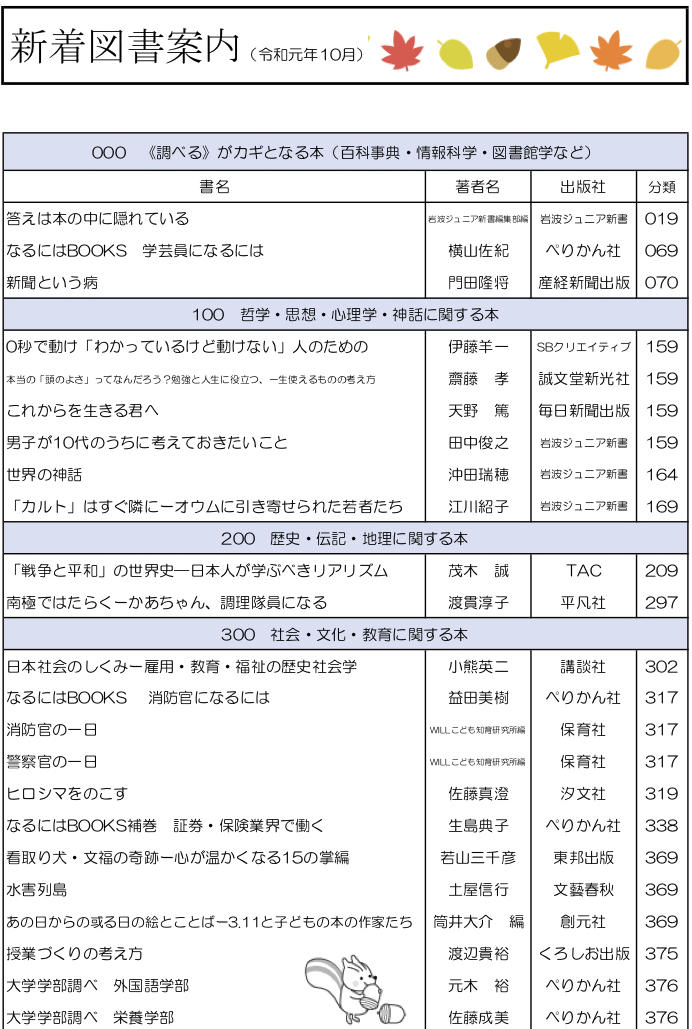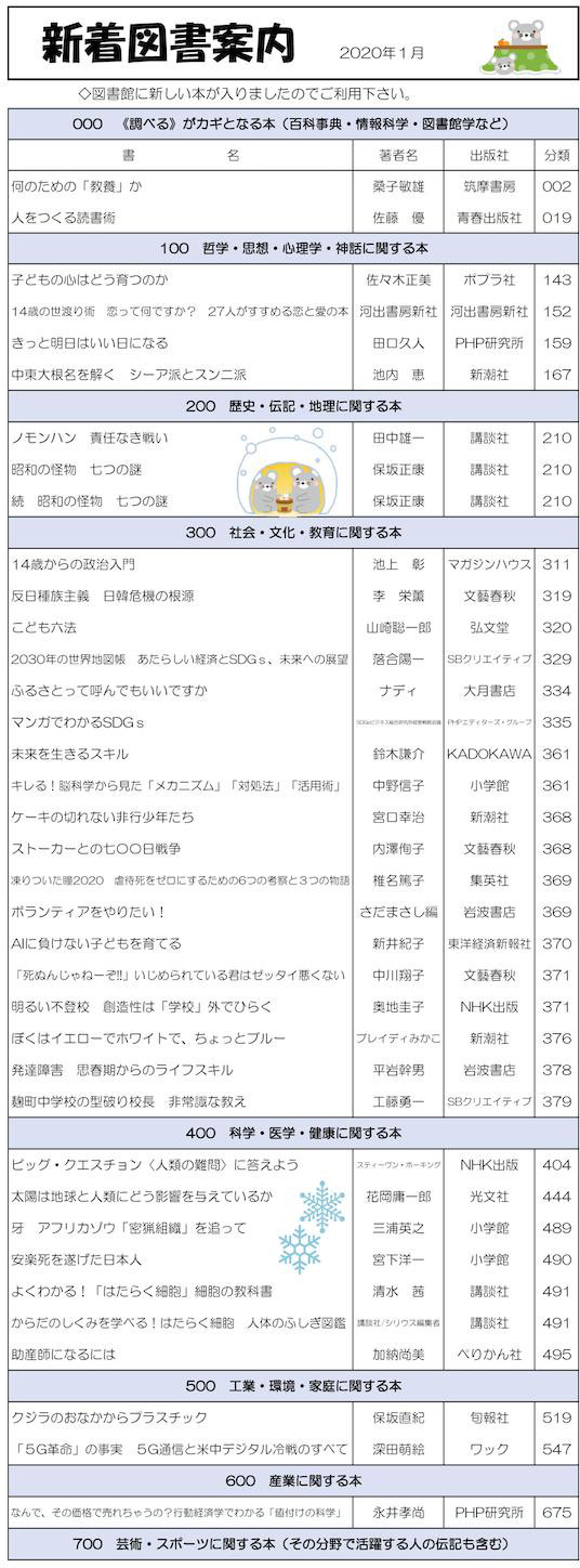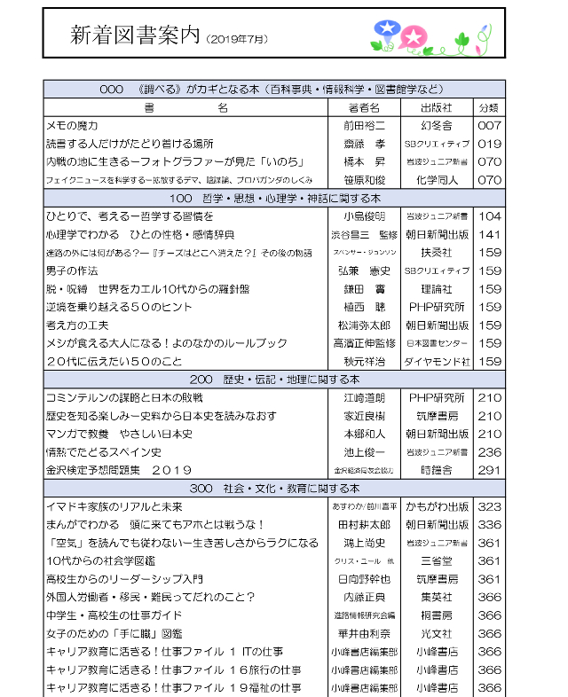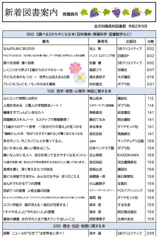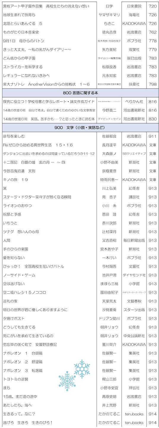 学校司書さんが,生徒,教職員に希望推薦図書をつのり,いろいろな選定参考資料を検討して作った,素晴らしい新刊たちです.