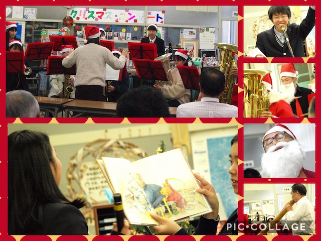 そして,メインアクトは,吹奏楽部.現在は部員5人の活動ですが顧問の先生二人も指揮ではなく演奏で参加し,和気あいあいでした.2年生の選んだ絵本「アンジェリーナのクリスマス」の進行にもぴったりの4曲を演奏していただきました.