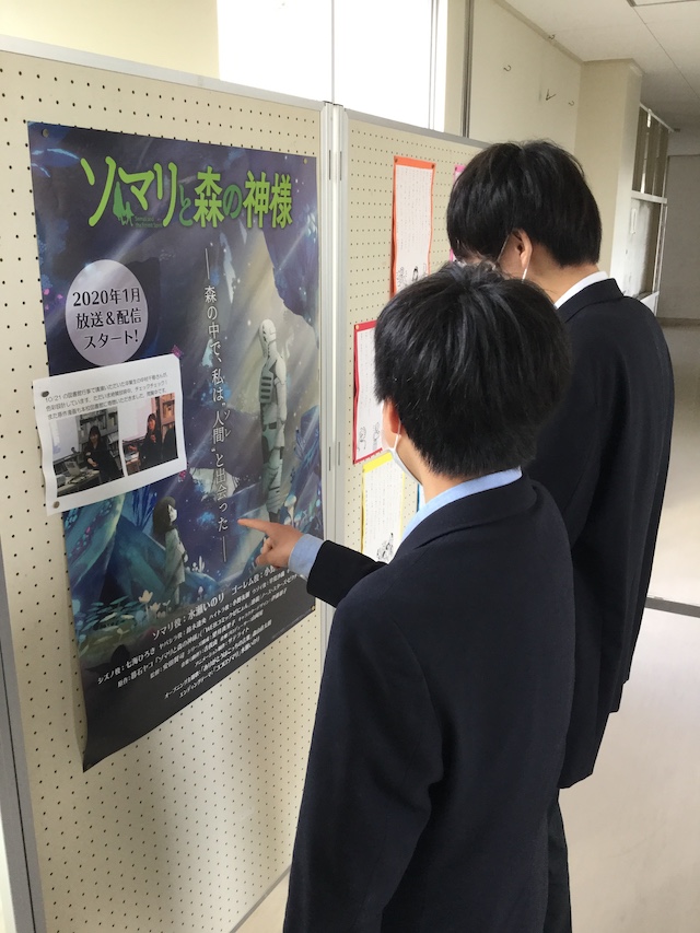 1,2年生の有志が近隣の家々にびらを配りました.もちろん図書館のアレンジなども頑張りました.