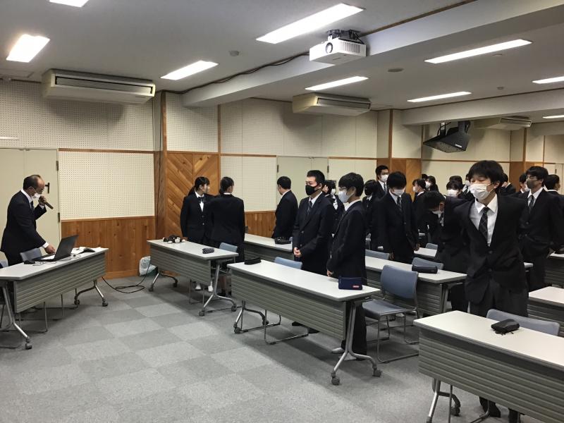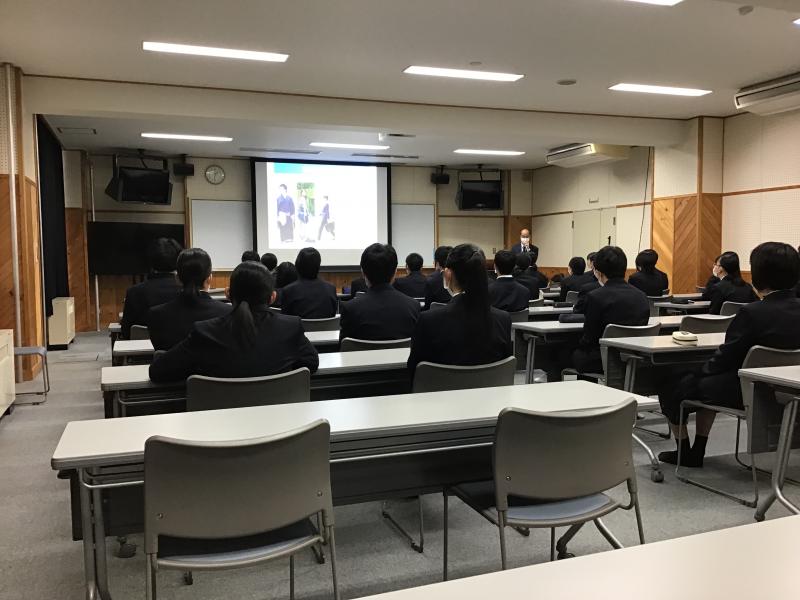 本日、1年生対象に着こなしセミナーが行われました。TPOに合わせて、オンタイム・オフタイムを考え、正しい制服の着こなしをしてほしいと思います。お互いに着こなしチェックもしました。