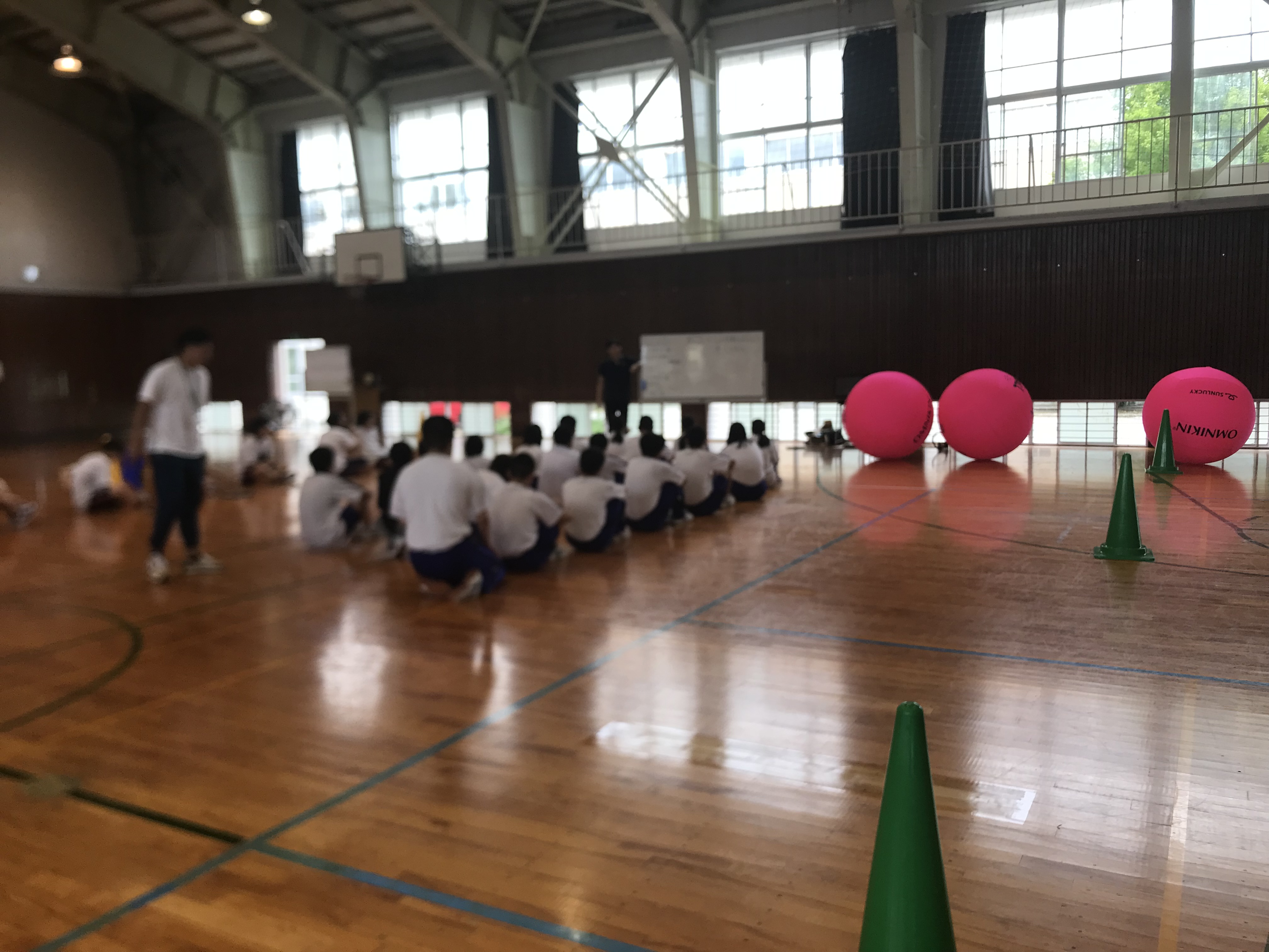 県より、伊藤数子氏(インクルーシブ教育アドバイザー:石川県成長戦略会議メンバー)と宮崎師行氏(石川県教育委員会学校指導課:課長補佐)が暑い体育館での活動の様子を参観されました。本当に有り難うございました<(_ _)>