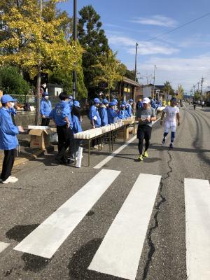 生徒会役員が参加し、ランナーに水を用意する仕事を任されました。