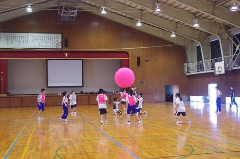 7月11日(月)3年生のニュースポーツの授業において、いしかわ特別支援学校の生徒さんとキンボールで交流しました。挨拶からグループに分かれての準備体操までは、お互いにとても恥ずかしそうにしていましたが、いざチームを組んでの対戦になると、自己紹介をして仲を深め、声をかけあって協力しあっていました。途中の作戦タイムでは、チームの結束が感じられるほどでした。