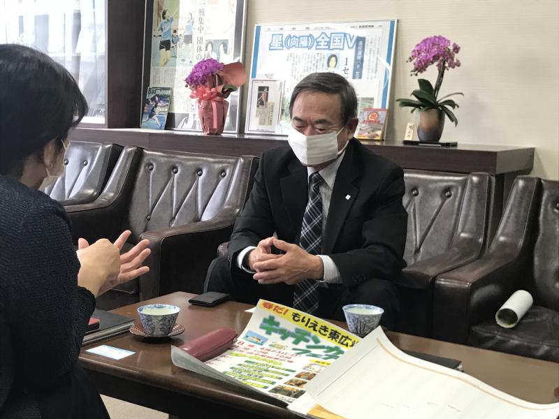 4月14日(金)午後、もりえき広場活用協議会会長の岩井一博氏が本校にご来校されました。