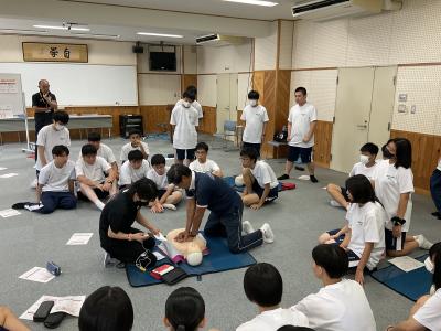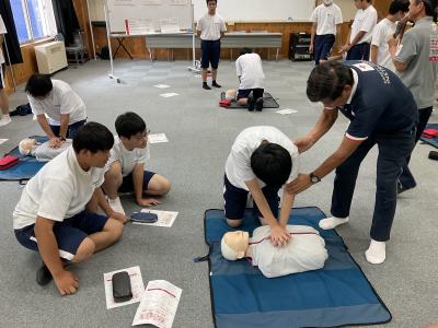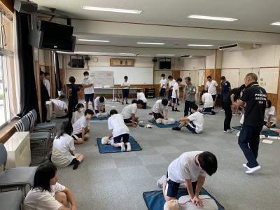生徒たちは心肺蘇生法(CPR)やAEDの使用方法など、