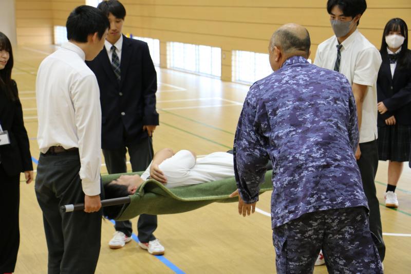 10月23日(木)実施の「能登でのフィールドワークを通じた防災学習」の事前学習として、自衛隊金沢駐屯地の方から能登地震ならびに能登豪雨の救援活動について、ご講話いただきました。実際に活動されたお話や使用された車両・写真、さらに簡易的に作れる救援道具などに触れ、多くのことを学ばせていただきました。これから1・3年生は奥能登で、2年生は北九州での修学旅行において震災について考える機会があります。今回の事前学習で学んだことを活かし、自分にできることは何かを考えて欲しいと思います。そして少しでも早い復旧・復興を願っています。