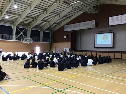 2年生は10月21日(火)から修学旅行で長崎を訪れます。事前学習の一つとして、原爆の被害や戦争体験について学び、平和の尊さについて学びました。被爆者の声に触れ自分たちにできる平和への取り組みについて考える1時間でした。